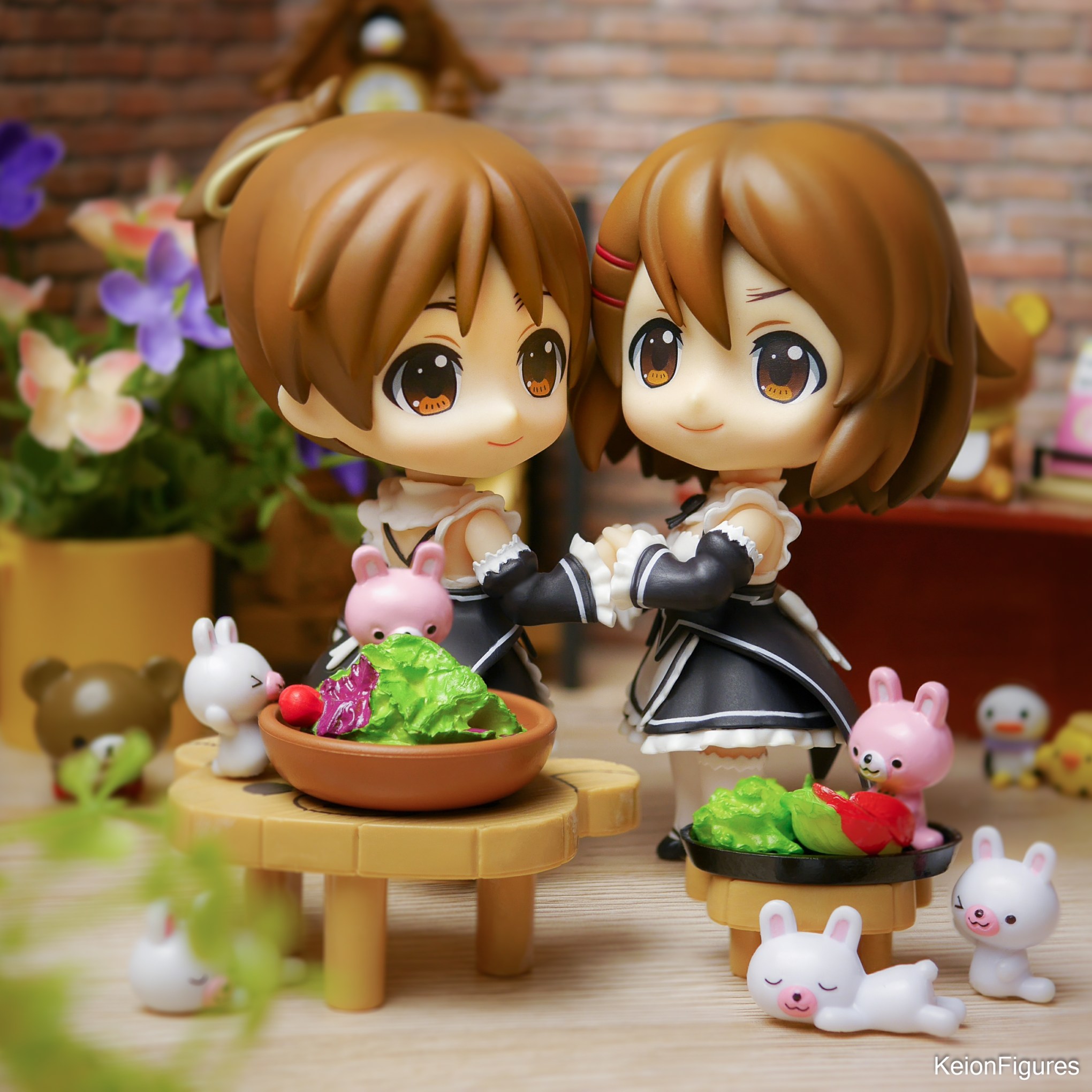 Ui was able to convince Yui to help her out in the bunny cafe. Together they prepared delicious salads. These were then immediately nibbled by the bunnies. 🐰🥗❤️