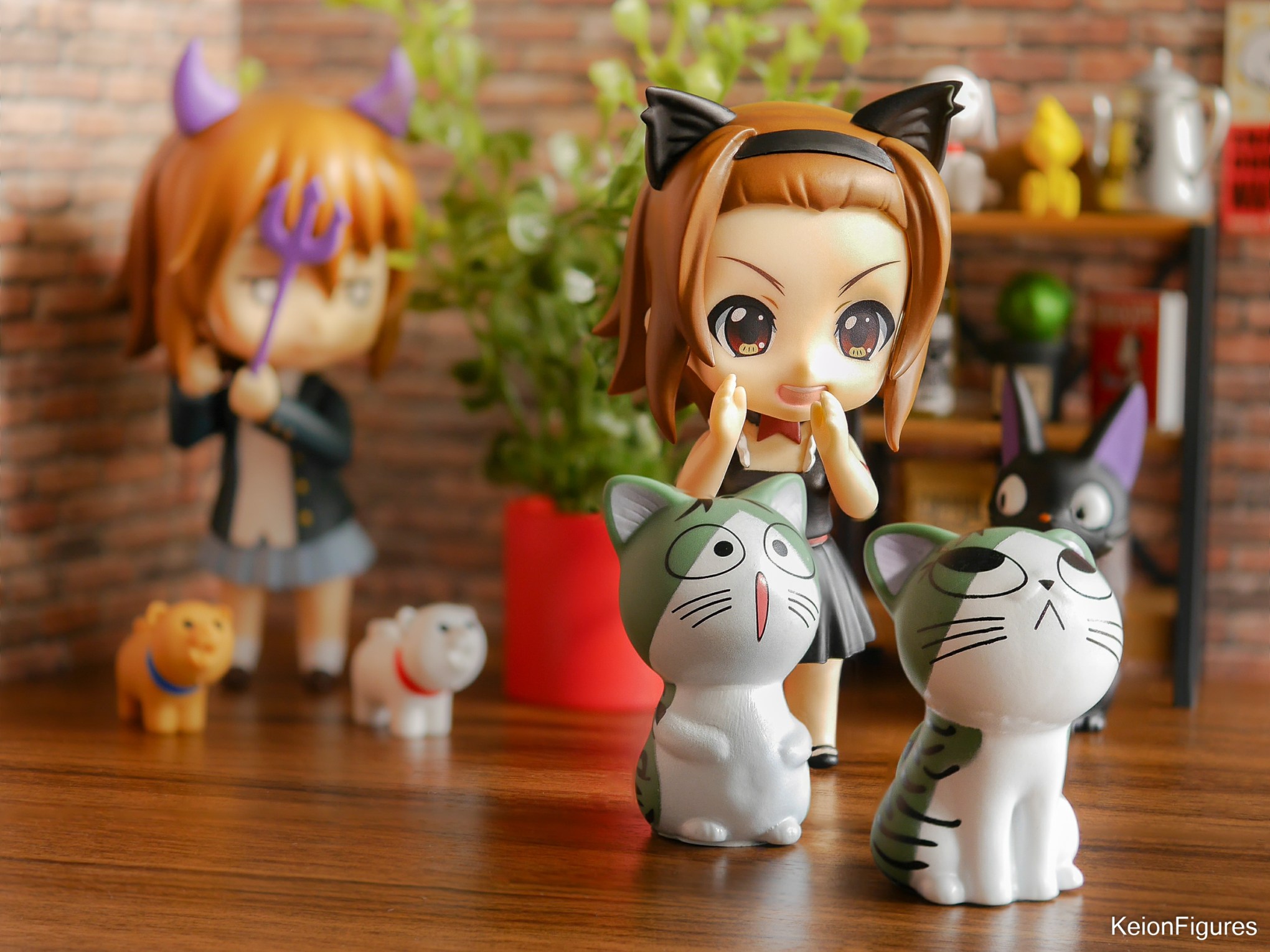 Ritsu-chan had a strange dream. She was in a cafe, and this twice. While calling for the cats, she snuck up behind herself to scare herself.