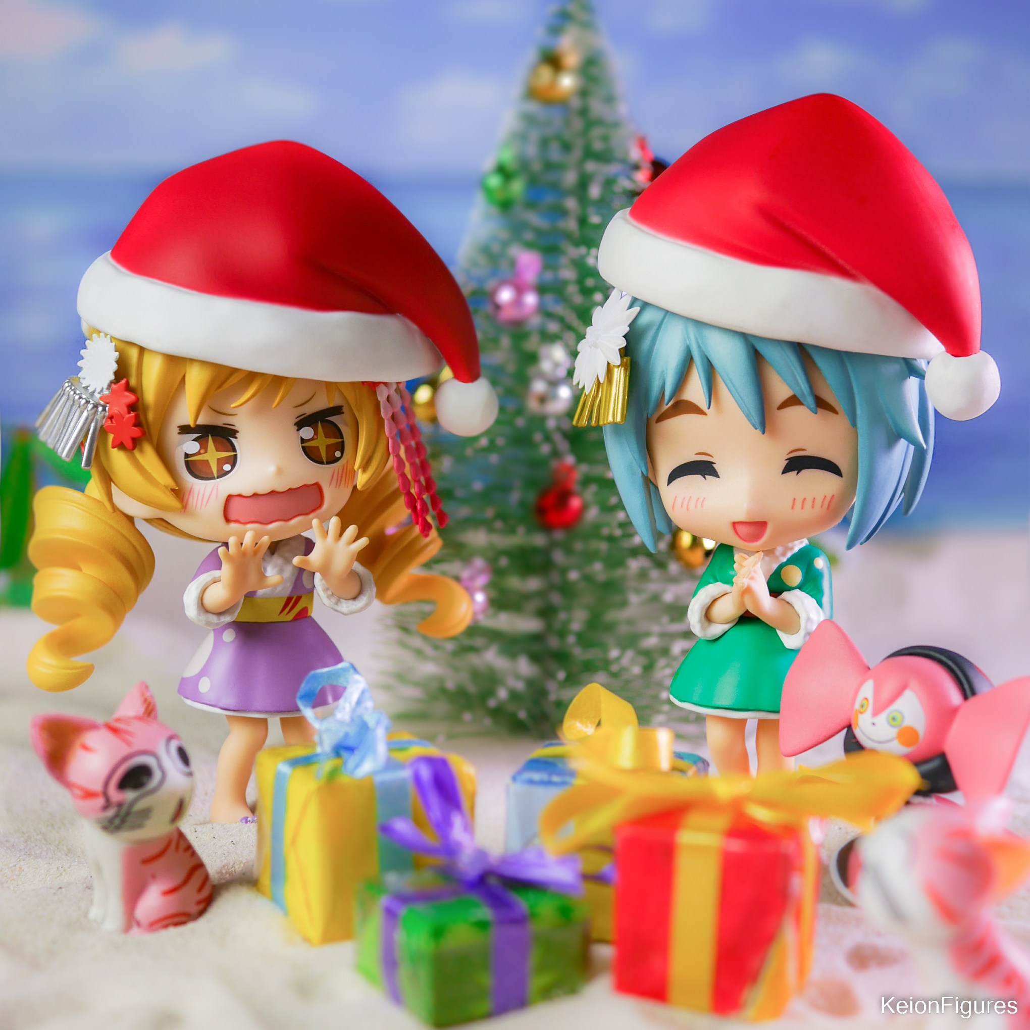 Mami und Sayaka wollten in diesem Jahr Weihnachten mal woanders feiern. Sie haben sich dafür eine schöne Insel in der Karibik ausgesucht. Schön warm ist es hier und es gibt sogar einen geschmückten Tannenbaum am Strand. 🎄