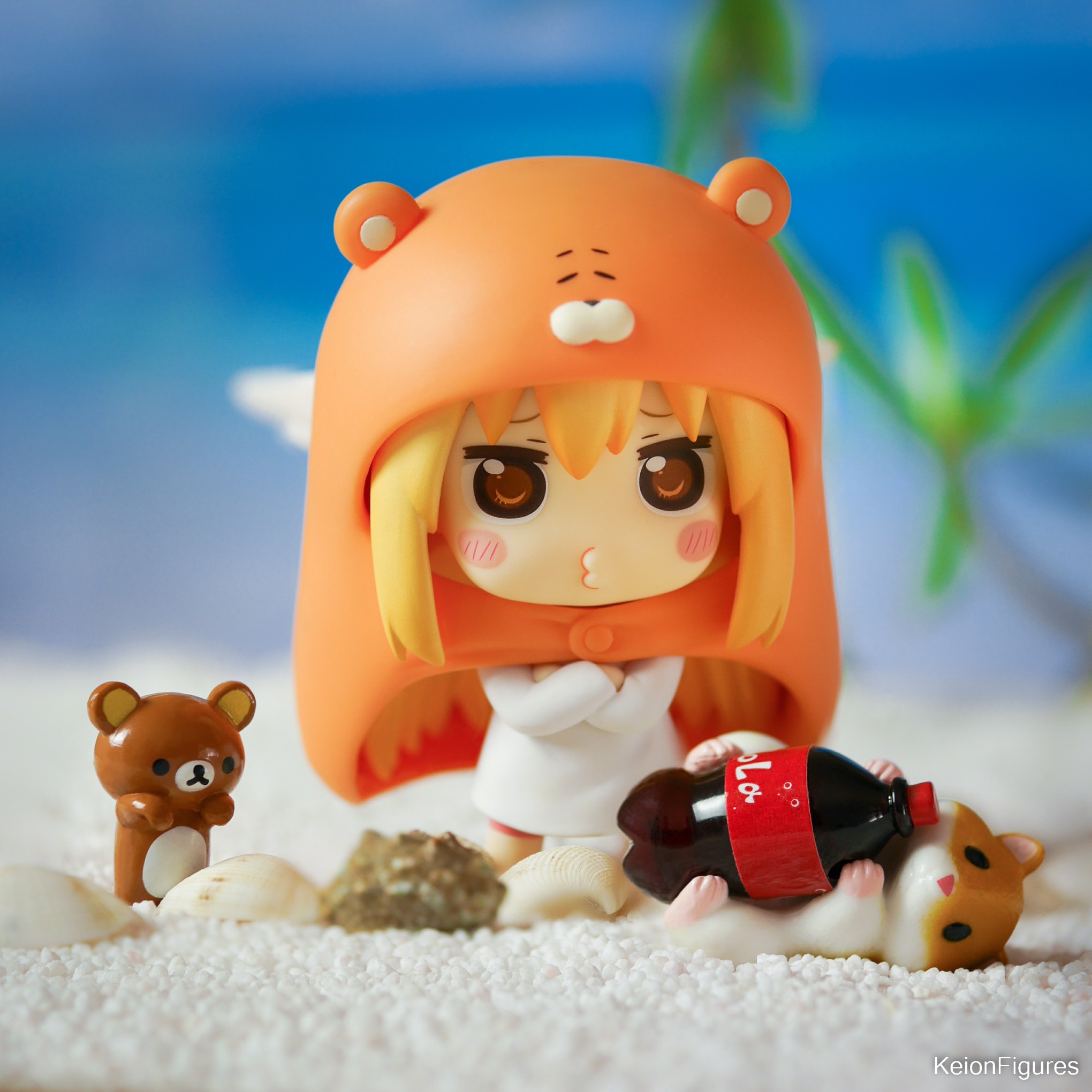Umaru hat sich heute mal wieder nach draußen getraut. Sie will das schöne Wetter am Strand genießen. Ein paar Chips und eine große Flasche Cola hat sie sich dafür mitgenommen. Und auch ihre beiden Hamster sind diesmal mitgekommen. 🐹