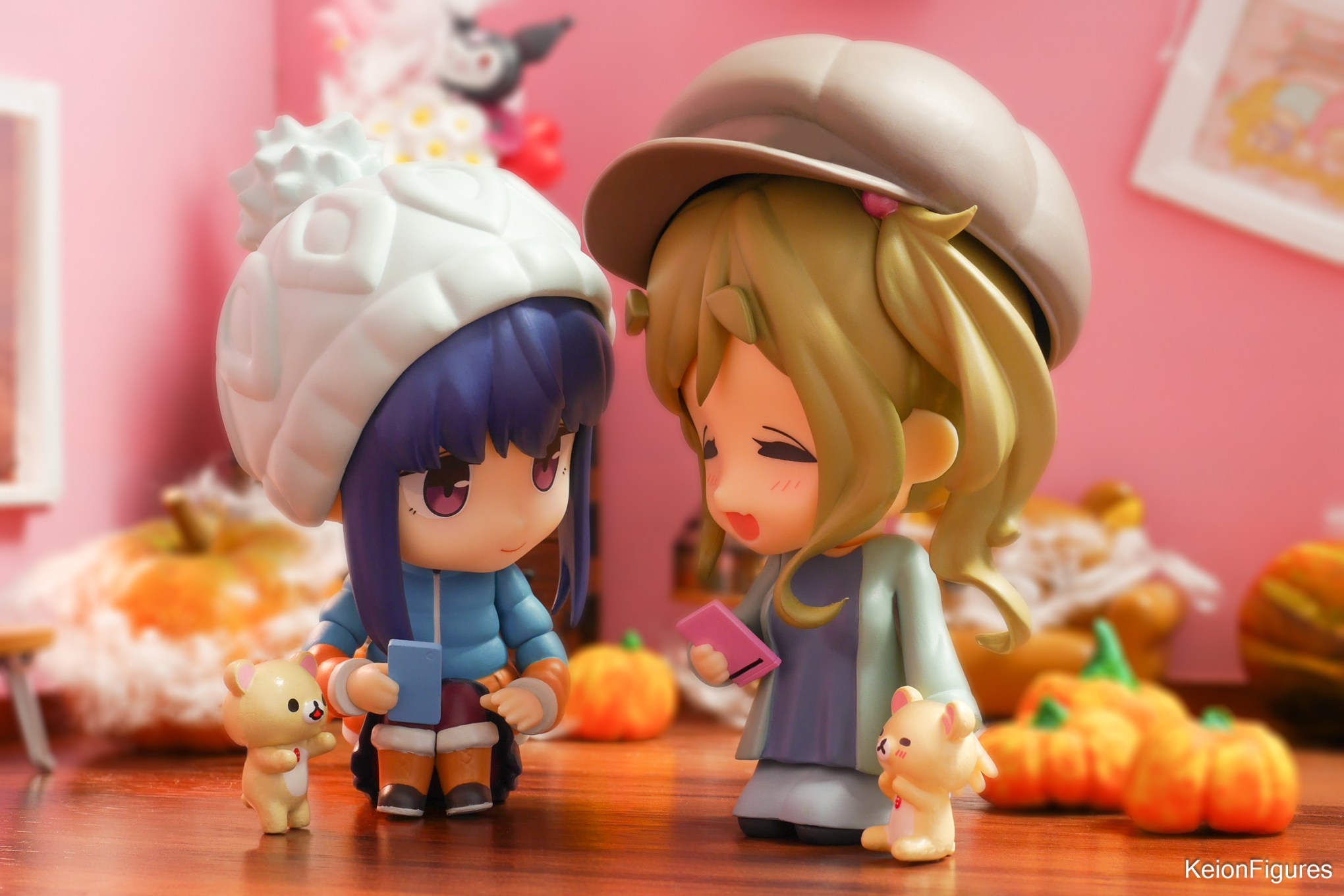 Aois Wohnzimmer war mit Kürbissen und anderen Halloween-Dekorationen geschmückt. Diese Kürbisse schienen zu leuchten und gaben dem Raum ein herrliches Ambiente. Die Rilakkumas von Aoi hüpften im Raum herum und verbreiteten eine fröhliche Stimmung. 🎃🧸