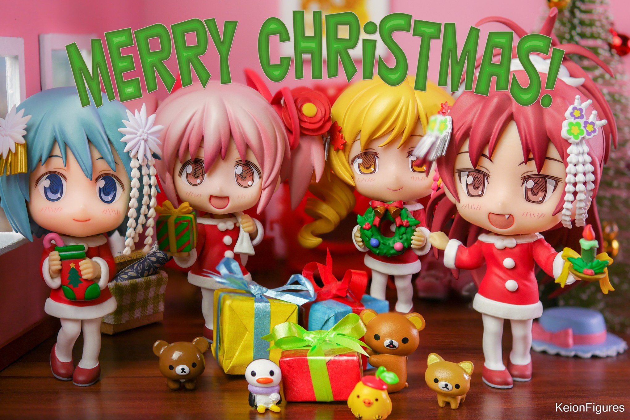 „Merry Christmas!“ rufen die vier Mädchen Kyoko, Madoka, Mami und Sayaka ausgelassen, als sie in ihren festlichen Weihnachtskostümen ein pinkfarbenes Zimmer betreten. Es ist wie eine Szene aus einem Märchen: Ein Berg von Geschenken wartet darauf, geöffnet zu werden. 🎄🎁