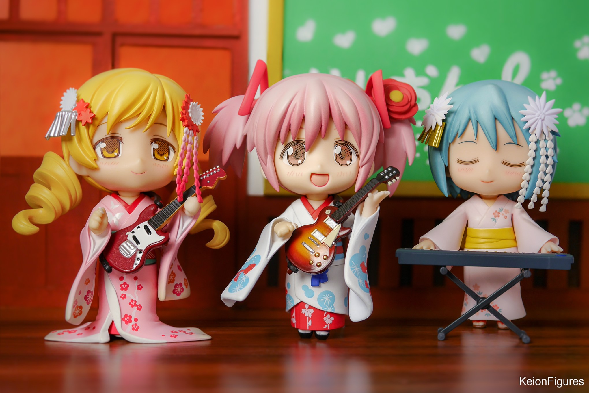 „Madoka beams, guitar in hand, declaring their next song will be their best. Alongside Mami Tomoe and Sayaka Miki in the K-On Club room, they are poised to make music. 🎤🎸🎹