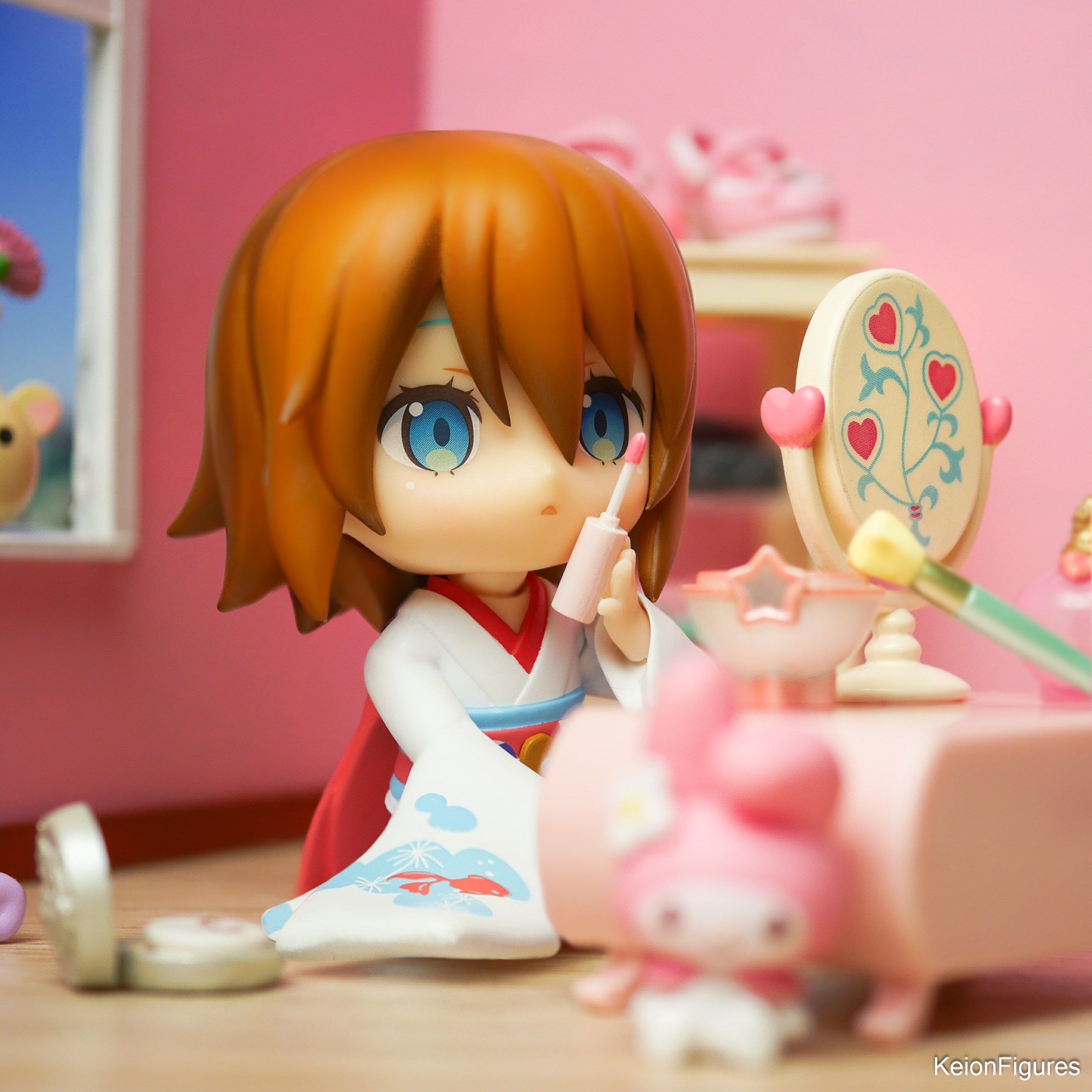 Am Schminktisch saß auch MyMelody, Ritsus treue Plüschfreundin, die immer da war, um ihr Gesellschaft zu leisten. Sie sah zu, wie Ritsu sich für den Tag vorbereitete, ein Bild des Friedens und der Freundschaft. 🐰👭