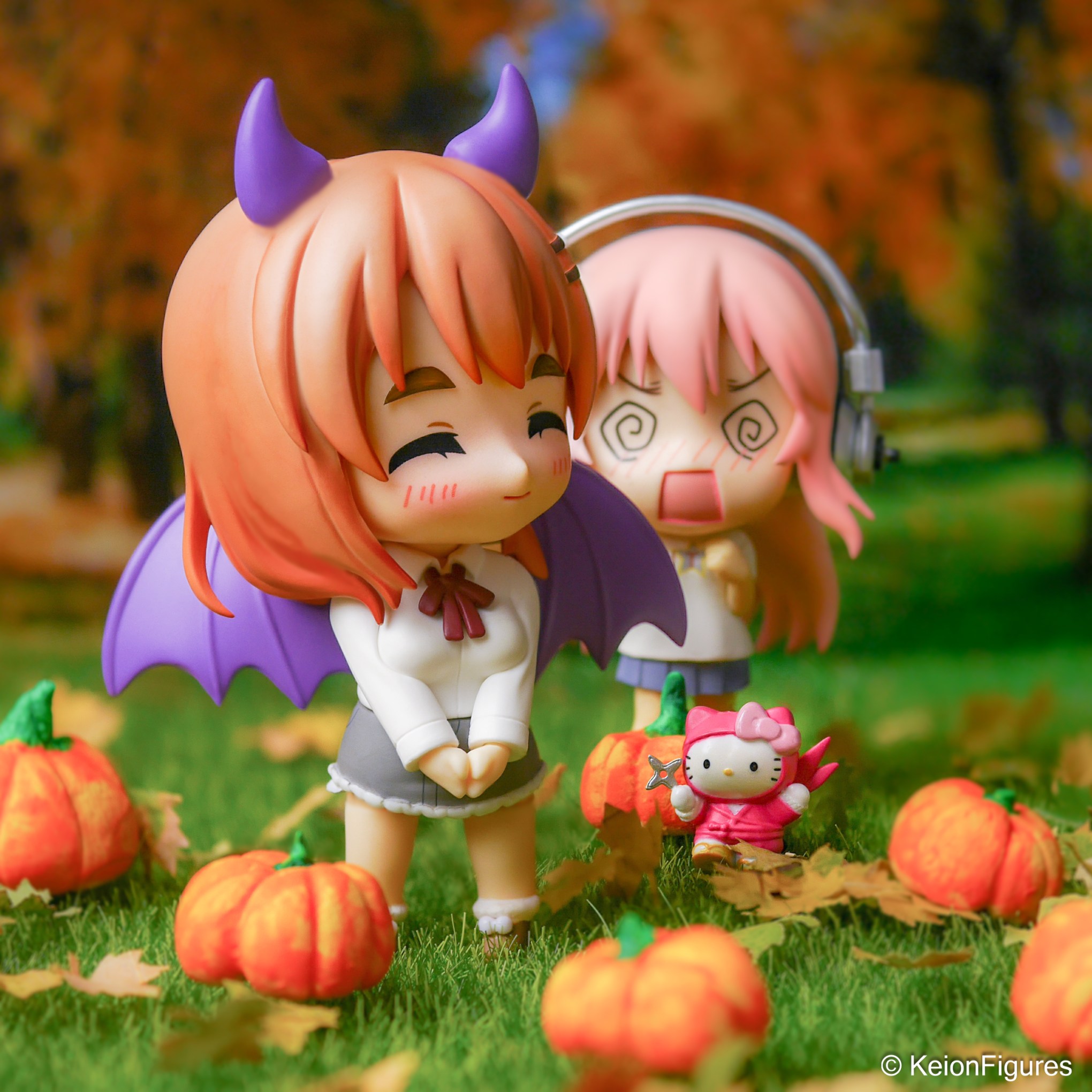 On a crisp autumn afternoon in the countryside near Nagano, Cocoa and Super Sonico wandered into a field dotted with pumpkins, their laughter echoing through the air. The golden leaves of the momiji trees danced in the breeze, and the scent of roasted sweet potato from a distant yatai drifted over. Cocoa, dressed as a mischievous devil with purple horns and wings, beamed with joy. 🎃🍁🍠