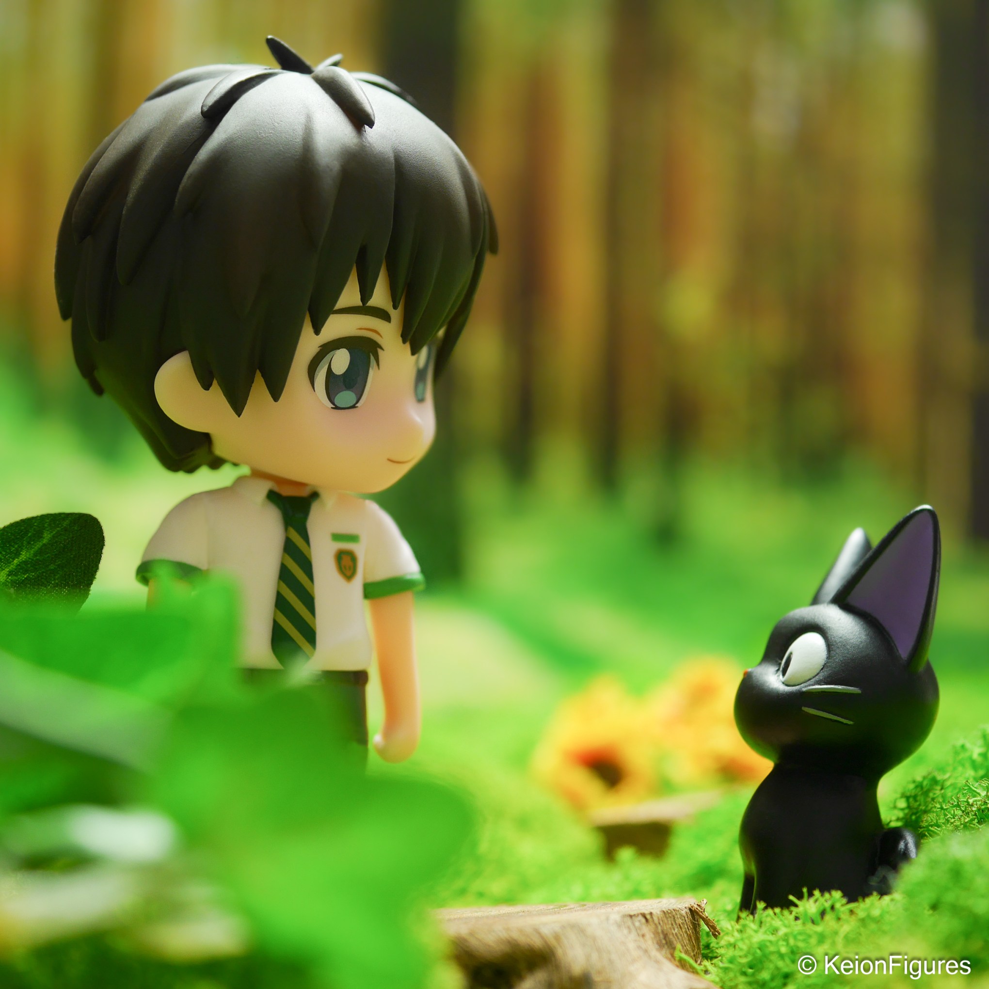 There, a small black cat sat calmly, her eyes bright and curious. Taki crouched down and greeted her: “Hello there.” To his surprise, the cat answered, “My name is Jiji.” Taki blinked in wonder but soon smiled, feeling that this encounter was something special. 🐾✨