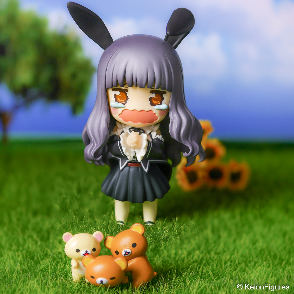 Vor ihr saßen Rilakkuma und Korilakkuma, ganz ruhig und friedlich, als wären sie schon immer Teil dieser Landschaft gewesen. Die beiden kleinen Bären schienen die Sonne zu genießen und lächelten Tomoyo an, als würden sie sie zu einem Picknick unter den Kirschbäumen einladen. Tomoyo musste lachen, ihre Tränen verwandelten sich in Freude, denn sie fühlte sich plötzlich nicht mehr allein. 🧸🌸😊